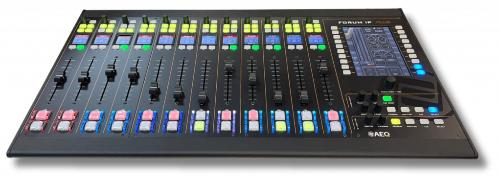 FORUM IP PLUS es la nueva consola digital AoIP de AEQ, diseñada para entornos de producción radiofónica y televisiva que requieren la máxima flexibilidad y una integración perfecta en las infraestructuras IP modernas. Como evolución de la conocida serie FORUM, combina la facilidad de uso con amplias capacidades de configuración, adaptándose a todo tipo de escenarios, desde estudios compactos hasta instalaciones complejas. Cuenta con 32 buses de mezcla y procesamiento y 10 buses N-1, además de conectividad multicanal a través de AoIP o MADI.