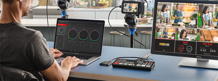 Y, si el modelo ATEM es de la línea ISO, aún es posible grabar, en un solo disco SSD, todas las entradas de la cámara en archivos de vídeo MP4 separados, para utilizarlos en la postproducción y reedición de todo el material en DaVinci Resolve. . También es posible grabar directamente en las cámaras en formato 4K RAW y luego transformar la producción en vivo de Full HD a 4K.