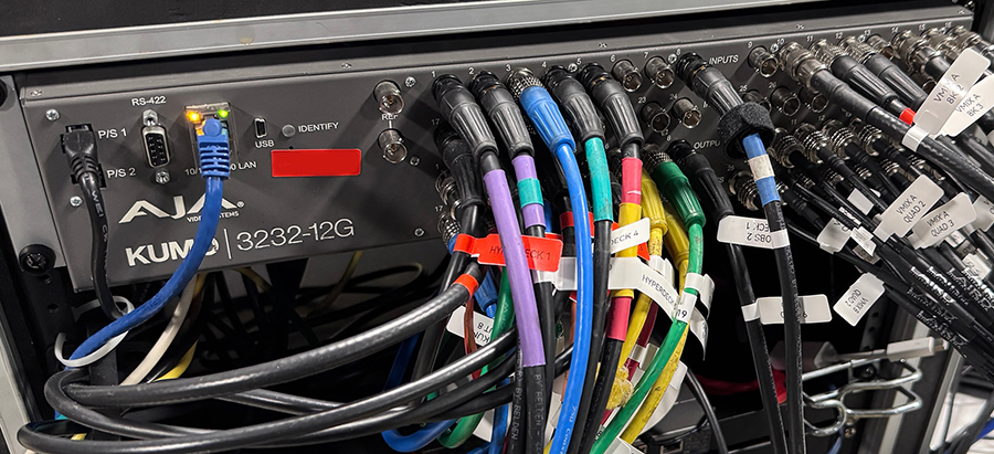 En ese marco, los routers AJA KUMO resultan fundamental para las operaciones del equipo, ya que proporcionan enrutamiento de señal flexible, E/S de baja latencia y más para producciones en estudio y remotas.