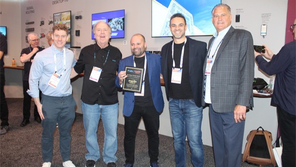 Por su parte, hubo un segundo premio que fue otorgado a su master distribuidor Merlin Distributor, ambos entregado por John Miller, VP of Sales y Dan Wingard, Territory Manager de AJA Video Systems junto al resto del equipo del fabricante en Las Vegas.