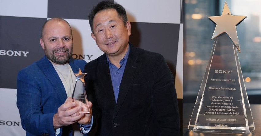 En el día previo al comienzo del NAB Show, en el ya clásico Sony Technology Forum, Sony Professional Latin America junto a Sony Brasil premiaron a Merlin Distributor por su trabajo y resultados alcanzados en ventas y distribución, dando un reconociendo el trabajo continuo en el desarrollo del mercado, en las acciones de marketing y en el fortalecimiento del ecosistema CPRO / Broadcast / Alpha en Brasil durante el año fiscal 2025, entregado por el propio Kenichiro Hibi, Presidente de Sony Professional Latin America y Luis Fernando Fabichack, Director Administrativo de Sony Professional Brasil, siendo recibido por Edson Marion, CEO de Merlin Distributor y acompañado por João Marchiore, CFO, y Valdiney Marcelino, Director Comercial del máster distribuidor.