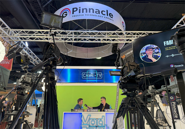 Pinnacle Group Arg. montó un stand con características especiales: un set de streaming en vivo, desde donde realizaron entrevistas, demostraciones y producción de contenido en directo. Esto no sólo permitió mostrar equipos y soluciones, sino dar una experiencia empírica al público asistente.