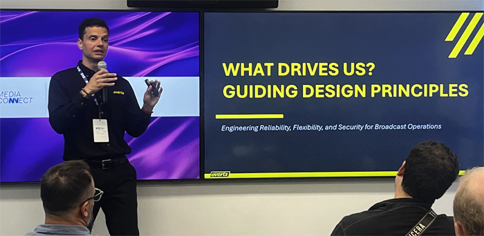 Referimos a la evolución de las infraestructuras broadcast hacia entornos IP, haciendo foco en la simplificación operativa de los que llamamos Orquestación Inteligente. En este sentido, nuestro mensaje se propuso demostrar cómo las soluciones de Evertz permiten integrar dispositivos tradicionales y nuevos, con una lógica de auto-discovery y control unificado. Se trata de una estrategia que facilita la gestión eficiente de flujos en tiempo real y reduce la complejidad tecnológica de los entornos híbridos.