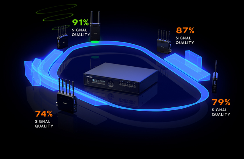 - Conmutación por error sin interrupciones: el dispositivo ingiere sin problemas hasta seis señales de receptores Teradek Ranger o Bolt. Su inteligencia integrada detecta y selecciona automáticamente la mejor ruta de señal disponible.